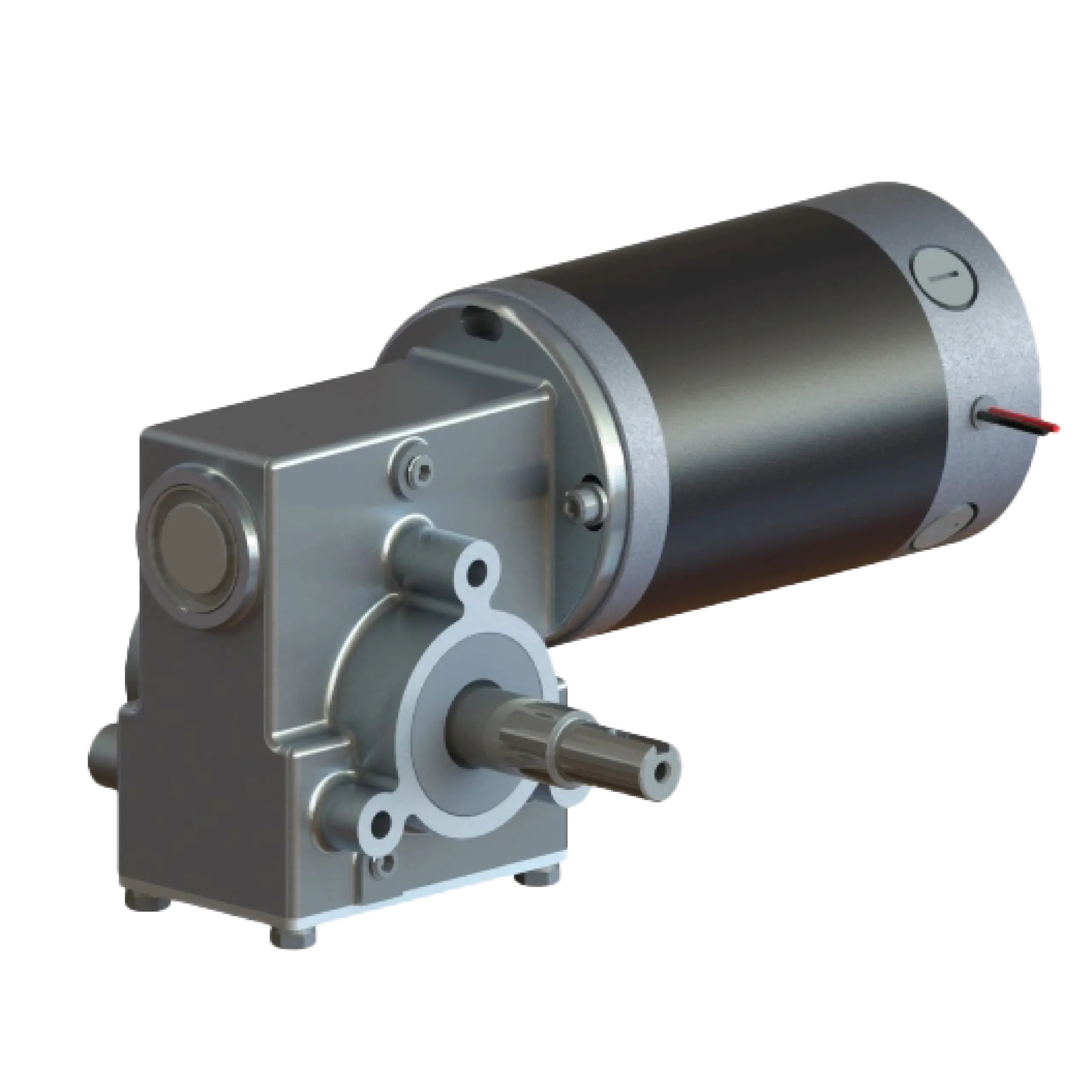 PMDC brushed right angle gearmotors feature a high efficiency worm gear design that allows you to downsize the motor and draw less current for a given load — creating a more energy efficient solution with a smaller footprint. They have the distinct advantage of generating very low audible noise. The right angle output configuration results in a compact, low-profile mounting.