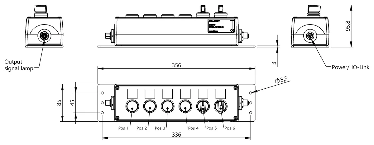 Principle of operation: IO-Link control panel, 6-way. Dimension: 85 x 64 x 285 mm. Ambient temperature min.: -5 °C. Ambient temperature max.: 55 °C. Approval/Conformity: CEWEEE