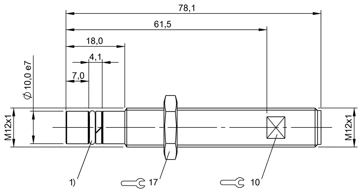 Dimension: Ø 12 x 78 mm. Style Housing: M12x1. Installation: for flush mounting. Range: 0.5…2 mm. Analog output: Analog, voltage 0…10 V. Output characteristic: falling on approach. Limit frequency –3 dB: 1000 Hz. Repeat accuracy per BWN: ±8 µm. Non-linearity max.: ±45 µm. Housing material: Stainless steel. Material sensing surface: Ceramic. Connection: Connector, M12x1-Male, 3-pin. Operating voltage Ub: 15…30 VDC. Ambient temperature: -25…85 °C. Pressure rating max.: 500 bar. IP rating: IP68. Approval/Conformity: CEUKCAcULusWEEE