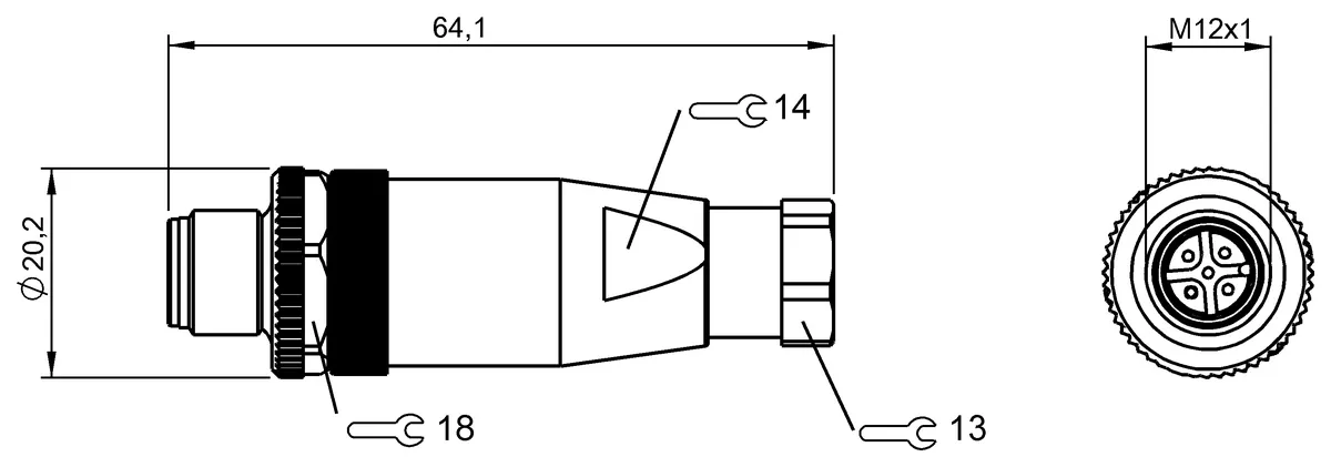 Connection: M12x1-Male, straight, 5-pin, A-coded. Number of connectable contacts: 5. Connection cross-section: 0.14…0.75 mm². Type of wire mounting: Screw terminals. Cable diameter D: 4…6 mm. Oper…