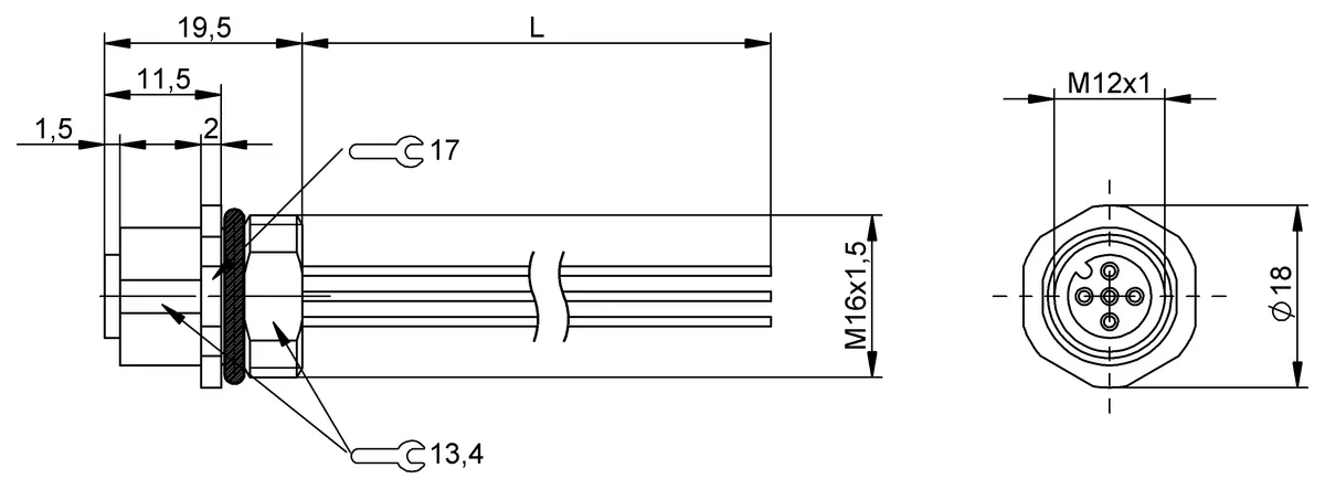 | Connection | M12x1-Female, straight, 4-pin, A-coded |