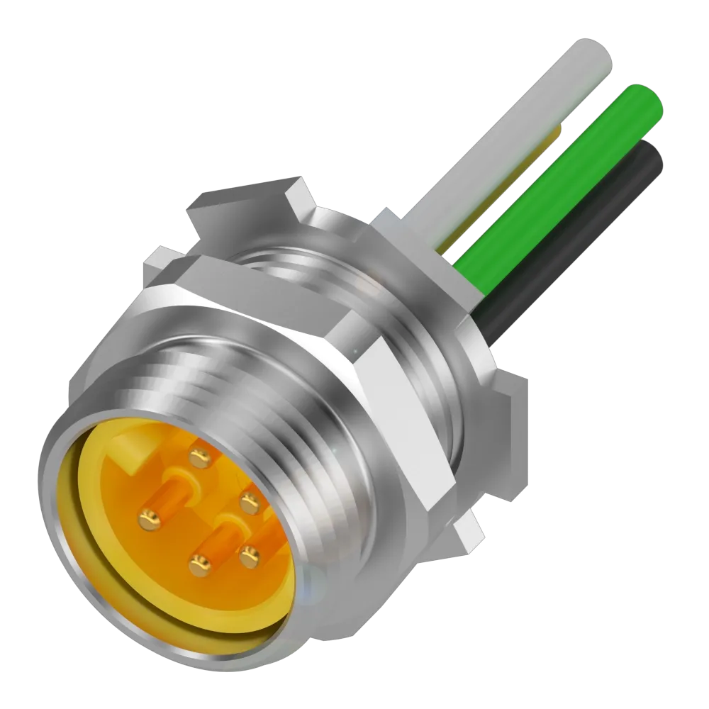 Connection: 7/8″-Male, straight, 5-pin. Number of conductors: 5. Conductor cross-section: 16 AWG. Lead length L: 2.00 m. Operating voltage Ub: 600 VDC / 600 VAC. Rated current (40 °C): 8.0 A. IP rating: IP67. Approval/Conformity: CEcULusWEEE