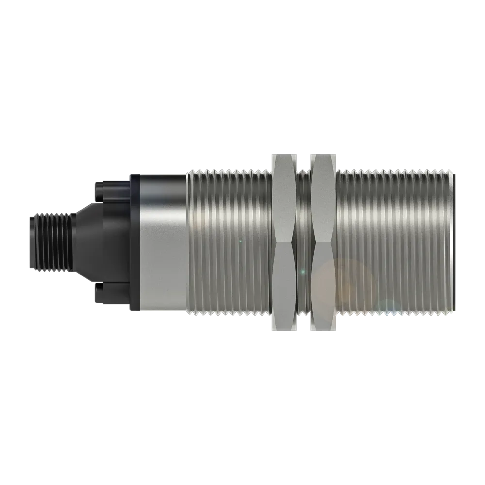 Dimension: Ø 30 x 87 mm. Series: M30. Thread (A): M30x1.5. Installation: for flush mounting. Connection: Connector, M12x1-Male, 4-pin. Switching output: PNP NO/NC programmable. Switching frequency: 100 Hz. Range: 1…20 mm. Sensitivity: Switching distance adjustable. Housing material: 1.4301 stainless steel. Material sensing surface: PBT. Ambient temperature: -30…70 °C. Operating voltage Ub: 10…35 VDC. Approval/Conformity: CEUKCAcULusWEEE. IP rating: IP66