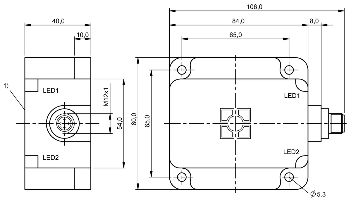 Dimension: 106 x 80 x 40 mm. Style Housing: 80×80. Installation: non-flush. Range: 50 mm. Switching output: PNP normally open/normally closed (NO/NC). Switching frequency: 50 Hz. Housing material: PBT, GF30. Material sensing surface: PBT, GF30. Connection: Connector, M12x1-Male, 4-pin. Operating voltage Ub: 10…55 VDC. Ambient temperature: -25…70 °C. IP rating: IP67. Approval/Conformity: CEUKCAWEEE