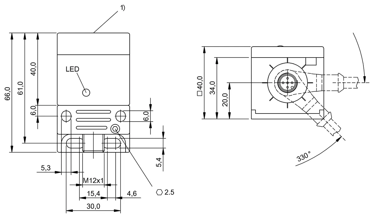 Dimension: 40 x 40 x 66 mm. Style Housing: 40×40. Installation: non-flush. Range: 35 mm. Interface: NAMUR. Switching frequency: 100 Hz. Housing material: PPEPPS. Material sensing surface: PPE. Connect…