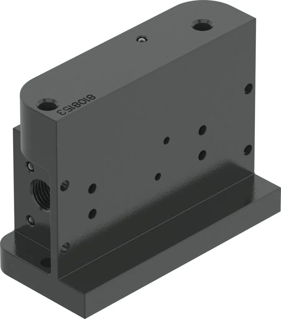 Prepared for positioner CMSH-V-SD with the mechanical interface for the sub-base version and switchable with mode of operation in the single-acting/double-acting version , Determines the operating mode of the positioner CMSH-V-SD , Variants with mechanical interface to VDI/VDE 3845 or to VDI/VDE 3847-2 , Variants with or without pressure gauge connection , With safety functions