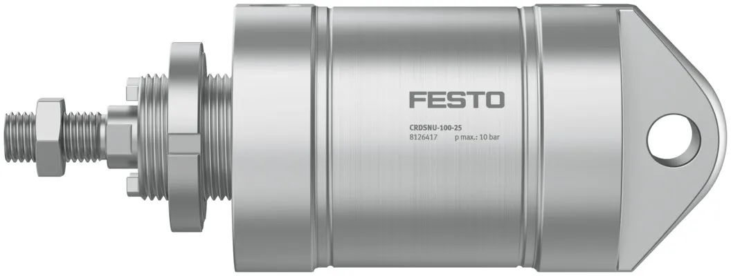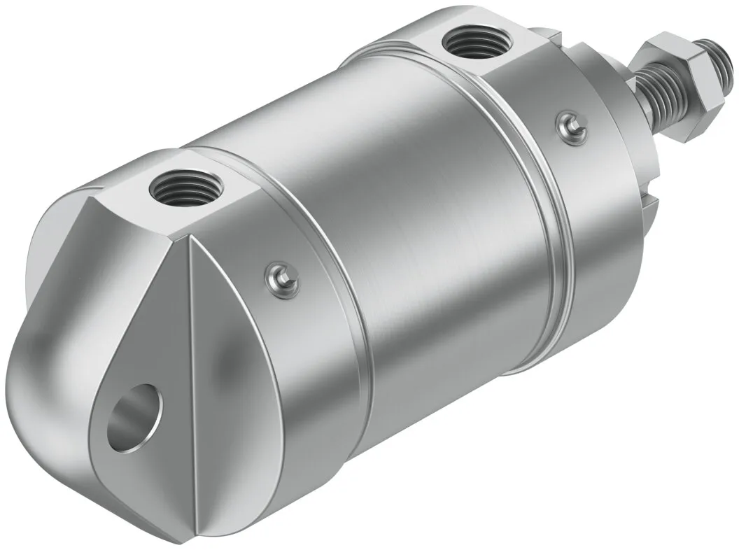 Corrosion resistant against aggressive ambient conditions , Easy-to-clean design , Long service life thanks to optional dry-running seal , Wide range of variants for customised applications , Self-adjusting pneumatic end-position cushioning saves time during commissioning and adapts optimally to load and speed changes , Suitable for direct contact with food according to European Regulation (EC) No. 1935/2004 , FDA-compliant seal and NSF-H1 lubrication