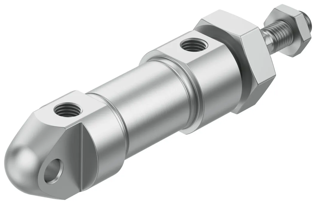 Corrosion resistant against aggressive ambient conditions , Easy-to-clean design , Long service life thanks to optional dry-running seal , Wide range of variants for customised applications , Self-adjusting pneumatic end-position cushioning saves time during commissioning and adapts optimally to load and speed changes , Suitable for direct contact with food according to European Regulation (EC) No. 1935/2004 , FDA-compliant seal and NSF-H1 lubrication