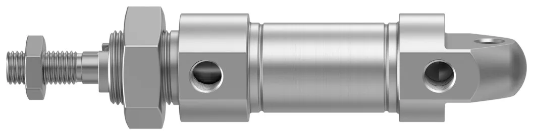 Corrosion resistant against aggressive ambient conditions , Easy-to-clean design , Long service life thanks to optional dry-running seal , Wide range of variants for customised applications , Self-adjusting pneumatic end-position cushioning saves time during commissioning and adapts optimally to load and speed changes , Suitable for direct contact with food according to European Regulation (EC) No. 1935/2004 , FDA-compliant seal and NSF-H1 lubrication
