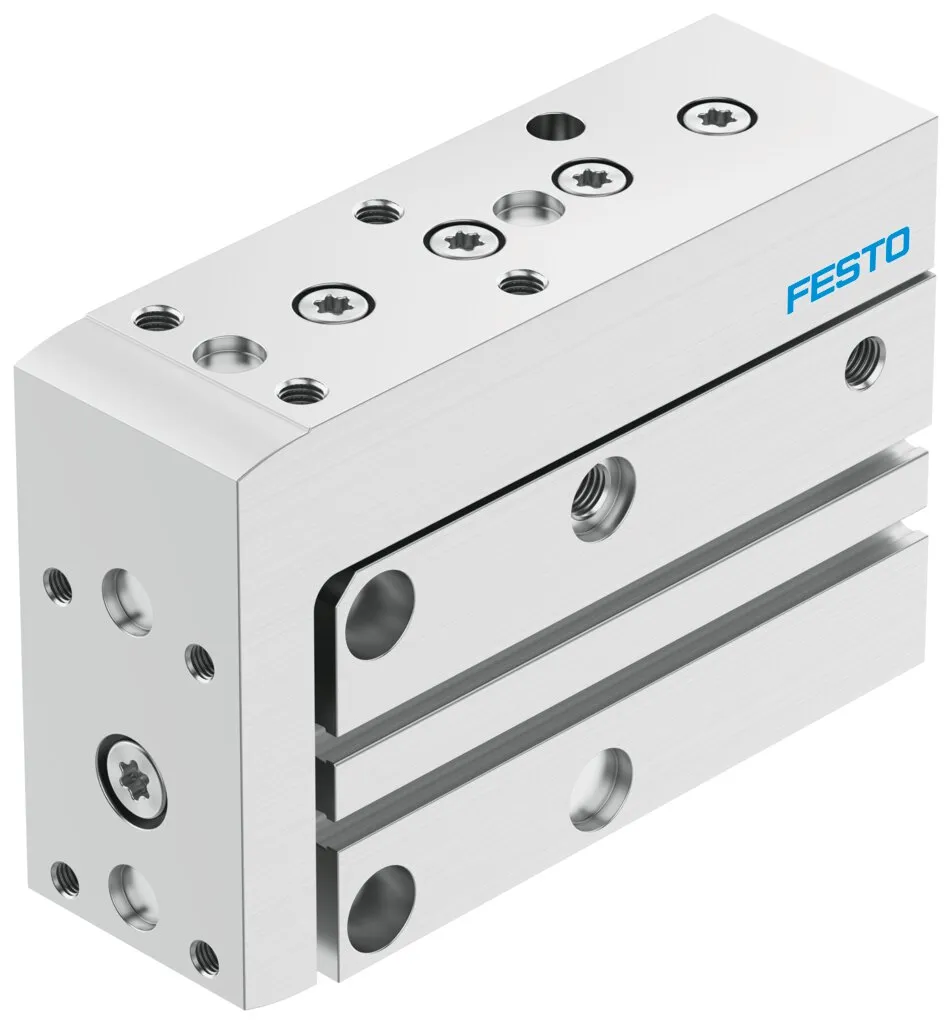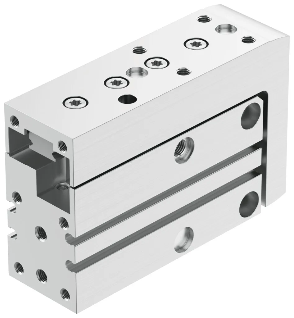Slim design , Excellent positioning accuracy , Precise and resilient roller bearing guide , Optimum price/performance ratio , Slide and yoke plate from one component , Can be operated without additional cushioning elements , Optional: stroke adjustment and external cushioning using accessories , Recommended for production systems for manufacturing lithium-ion batteries
