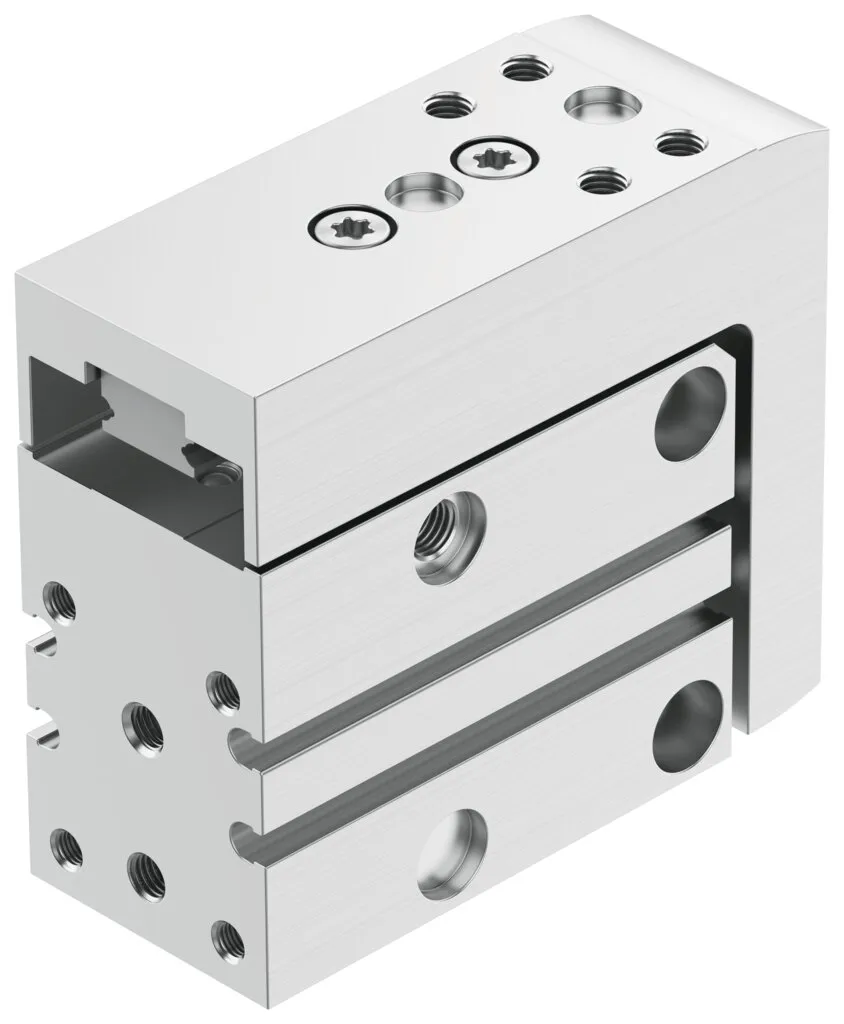 Slim design , Excellent positioning accuracy , Precise and resilient roller bearing guide , Optimum price/performance ratio , Slide and yoke plate from one component , Can be operated without additional cushioning elements , Optional: stroke adjustment and external cushioning using accessories , Recommended for production systems for manufacturing lithium-ion batteries