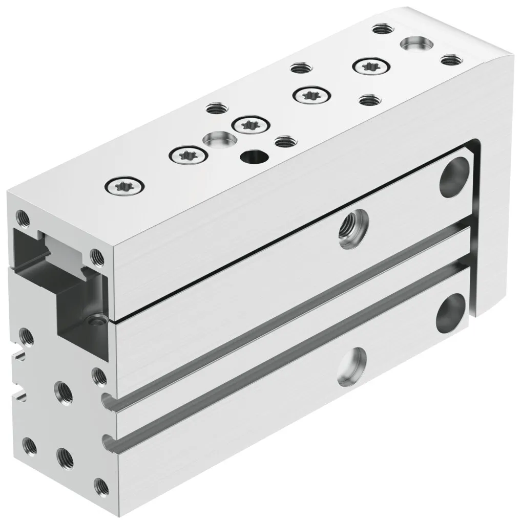 Slim design , Excellent positioning accuracy , Precise and resilient roller bearing guide , Optimum price/performance ratio , Slide and yoke plate from one component , Can be operated without additional cushioning elements , Optional: stroke adjustment and external cushioning using accessories , Recommended for production systems for manufacturing lithium-ion batteries