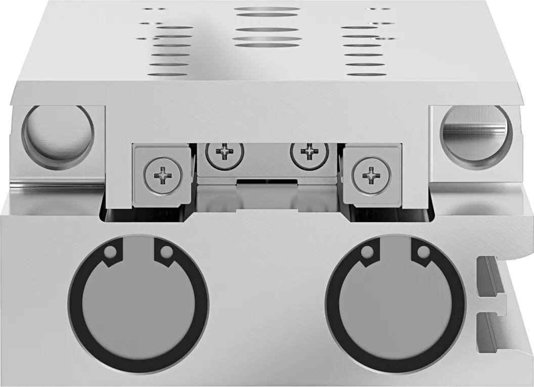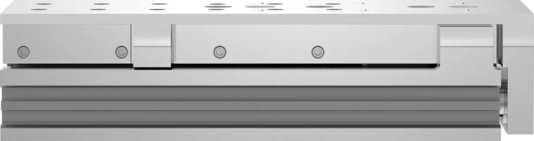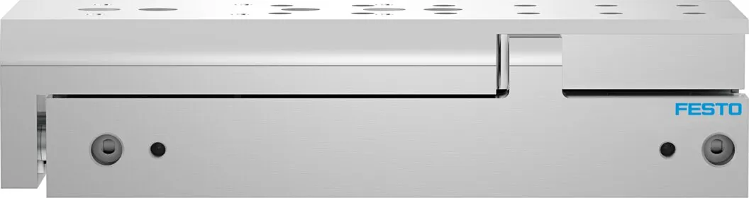 Powerful twin-piston drive , Shortest mini slide on the market , Precise recirculating ball bearing guide , Versatile mounting options , Version with mirrored supply port configuration and sensor slots for compact assembly available to order using the configurator , Variants recommended for production systems for manufacturing lithium-ion batteries , Sustainable in production thanks to reduced use of materials