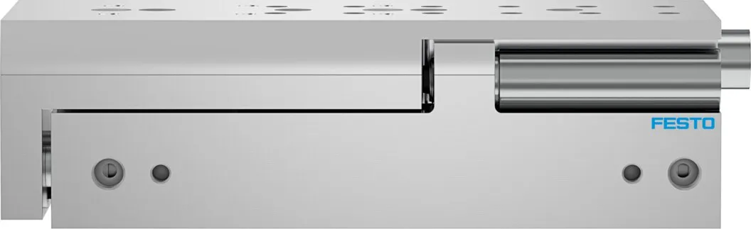 Powerful twin-piston drive , Shortest mini slide on the market , Precise recirculating ball bearing guide , Versatile mounting options , Version with mirrored supply port configuration and sensor slots for compact assembly available to order using the configurator , Variants recommended for production systems for manufacturing lithium-ion batteries , Sustainable in production thanks to reduced use of materials