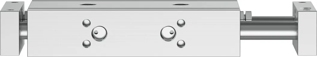 Minimal space requirement , Minimal mounting time , High resistance to torques and lateral forces , High rigidity thanks to its guide rods with large diameter and two plain-bearing bushes , Wide range of mounting options , Drive and guide unit in a single housing , Plain bearing