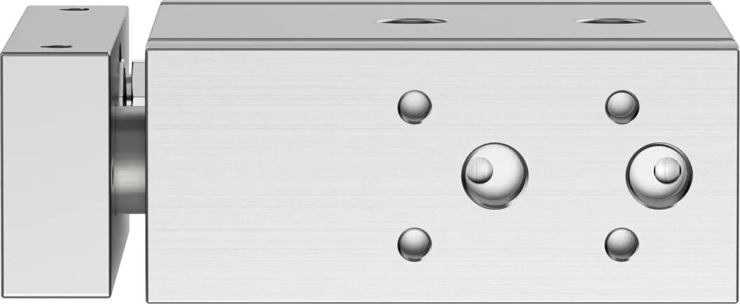 Minimal space requirement , Minimal mounting time , High resistance to torques and lateral forces , High rigidity thanks to its guide rods with large diameter and two plain-bearing bushes , Wide range of mounting options , Drive and guide unit in a single housing , Plain bearing