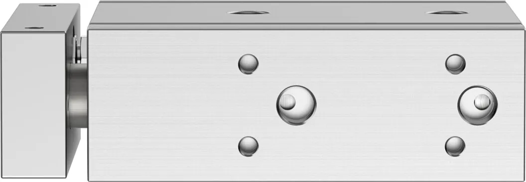Minimal space requirement , Minimal mounting time , High resistance to torques and lateral forces , High rigidity thanks to its guide rods with large diameter and two plain-bearing bushes , Wide range of mounting options , Drive and guide unit in a single housing , Plain bearing