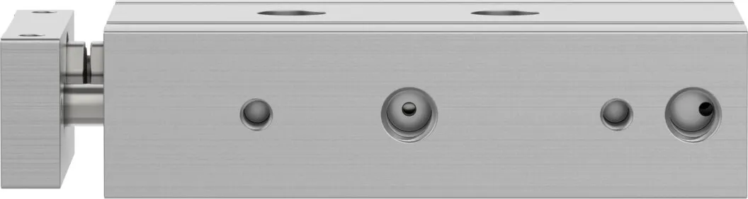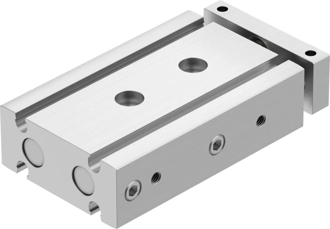 Minimal space requirement , Minimal mounting time , High resistance to torques and lateral forces , High rigidity thanks to its guide rods with large diameter and two plain-bearing bushes , Wide range of mounting options , Drive and guide unit in a single housing , Plain bearing