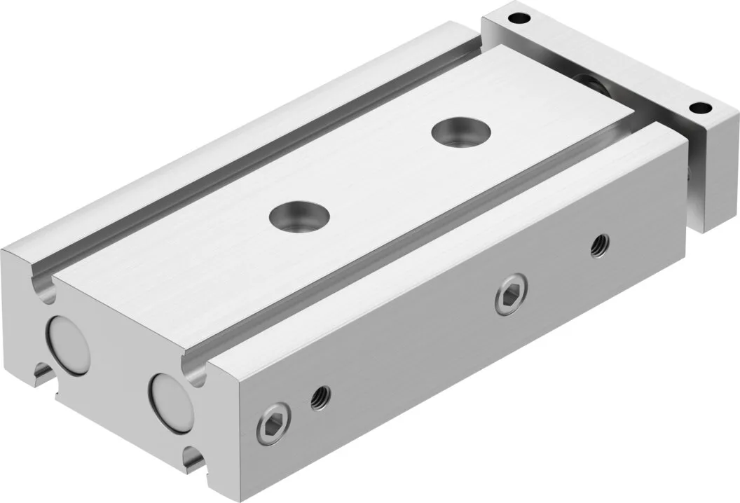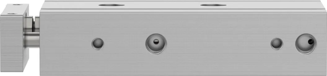 Minimal space requirement , Minimal mounting time , High resistance to torques and lateral forces , High rigidity thanks to its guide rods with large diameter and two plain-bearing bushes , Wide range of mounting options , Drive and guide unit in a single housing , Plain bearing