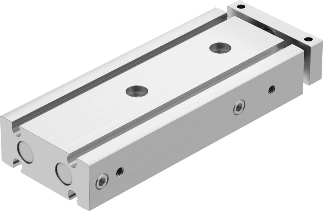 Minimal space requirement , Minimal mounting time , High resistance to torques and lateral forces , High rigidity thanks to its guide rods with large diameter and two plain-bearing bushes , Wide range of mounting options , Drive and guide unit in a single housing , Plain bearing