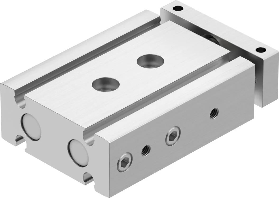 Minimal space requirement , Minimal mounting time , High resistance to torques and lateral forces , High rigidity thanks to its guide rods with large diameter and two plain-bearing bushes , Wide range of mounting options , Drive and guide unit in a single housing , Plain bearing