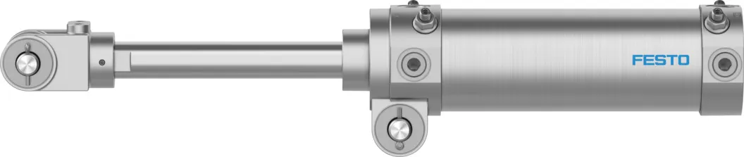 For clamping components during the welding process , Double-acting , Easy to mount thanks to swivel bearing on the bearing cap , Integrated flow control , Integrated end-position cushioning , Rod wiper seal to protect against welding spatter , Asian automotive standard for car body production
