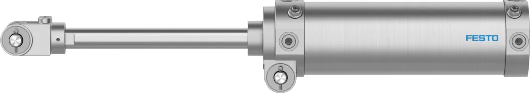 For clamping components during the welding process , Double-acting , Easy to mount thanks to swivel bearing on the bearing cap , Integrated flow control , Integrated end-position cushioning , Rod wiper seal to protect against welding spatter , Asian automotive standard for car body production