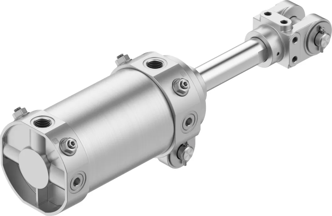For clamping components during the welding process , Double-acting , Easy to mount thanks to swivel bearing on the bearing cap , Integrated flow control , Integrated end-position cushioning , Rod wiper seal to protect against welding spatter , Asian automotive standard for car body production