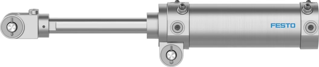 For clamping components during the welding process , Double-acting , Easy to mount thanks to swivel bearing on the bearing cap , Integrated flow control , Integrated end-position cushioning , Rod wiper seal to protect against welding spatter , Asian automotive standard for car body production