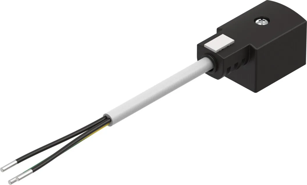 For solenoid coils with plug pattern type B as per industrial standard, 11 mm , For F solenoid coils , Cable length 2.5 … 10 m , With PVC cable , Ambient temperature -20 … +80 °C