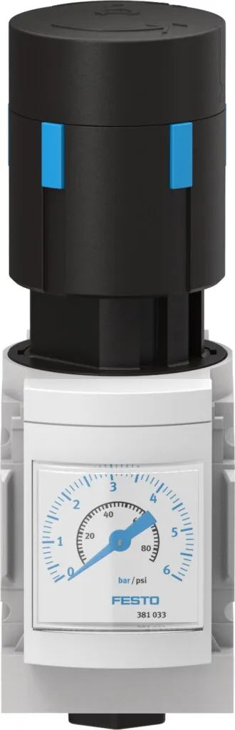 Grid dimension 40mm , High flow rate performance with minimal pressure drop , Good control characteristics with minimal pressure hysteresis and primary pressure compensation , With or without secondary exhausting , Lockable rotary knob , Optional pressure sensor and rotary knob pressure gauge , Sustainable operation thanks to reduced pressure level