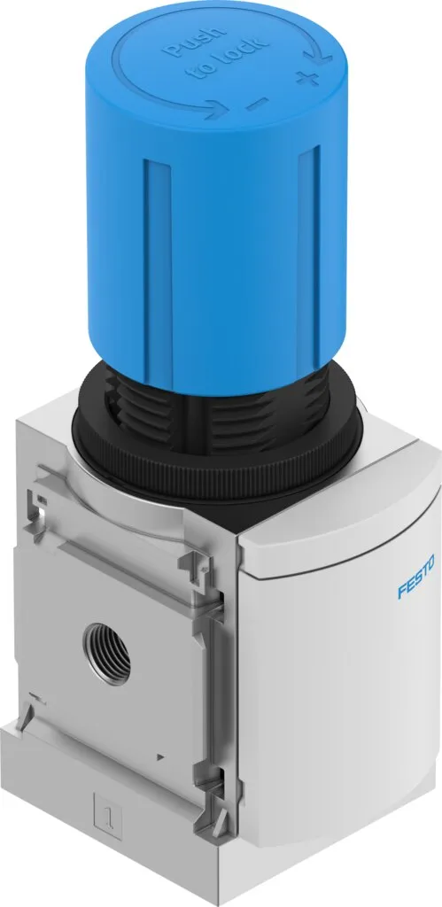 Grid dimension 62 mm , High flow rate performance with minimal pressure drop , Good control characteristics with minimal pressure hysteresis and primary pressure compensation , With or without secondary exhausting , Lockable rotary knob , Optional pressure sensor and rotary knob pressure gauge , Sustainable operation thanks to reduced pressure level