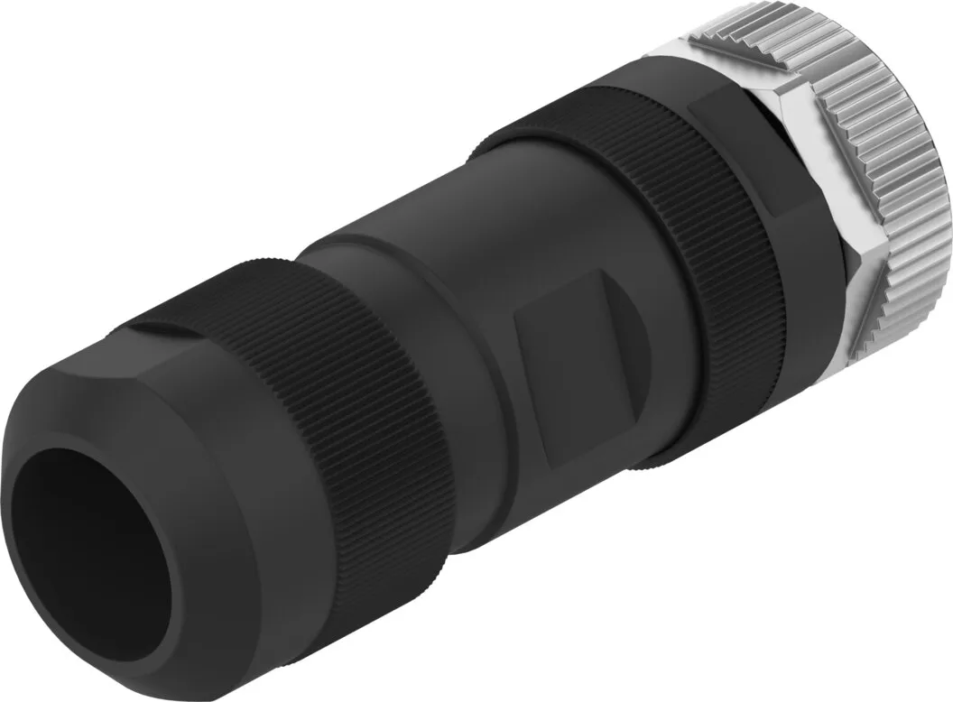 Power supply socket, power supply plug , Straight or angled design , For thread M12x1, L-coded to EN 61076-2-111 , For cable diameter 8 … 13 mm