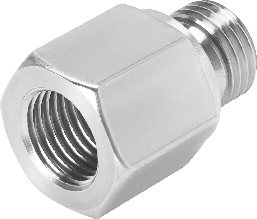 Adapter with filter , From male thread G1/4 to female thread G1/4 or NPT1/4 and male thread NPT1/4 to female thread NPT1/4 , Adapter material: high-alloy stainless steel , Operating medium compressed air