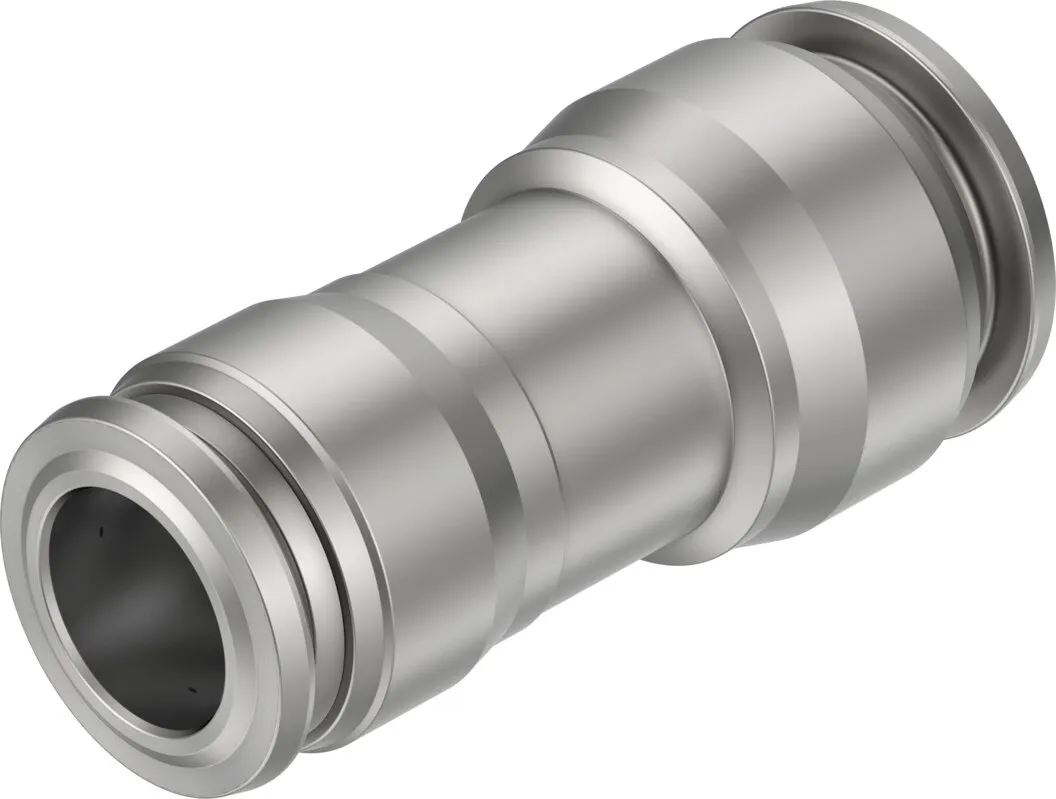 Very easy to clean thanks to chamfered O-ring and fewer edges where dirt can accumulate , Optimal price/performance ratio, perfect for applications from a single source , Maximum corrosion resistance (corrosion resistance class CRC 4 to Festo standard 940 070) and chemical resistance , High temperature resistance , Stainless steel , Operating media: compressed air, vacuum, (water) , Straight shape, L-shape, T-shape, Y-shape, push-in bulkhead connector