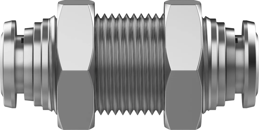 Very easy to clean thanks to chamfered O-ring and fewer edges where dirt can accumulate , Optimal price/performance ratio, perfect for applications from a single source , Maximum corrosion resistance (corrosion resistance class CRC 4 to Festo standard 940 070) and chemical resistance , High temperature resistance , Stainless steel , Operating media: compressed air, vacuum, (water) , Straight shape, L-shape, T-shape, Y-shape, push-in bulkhead connector