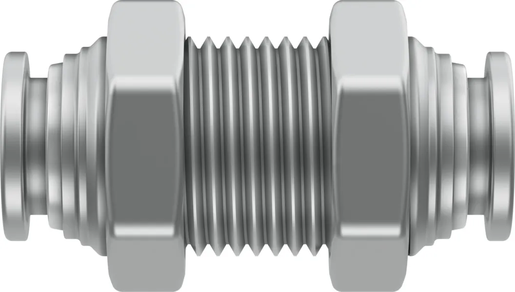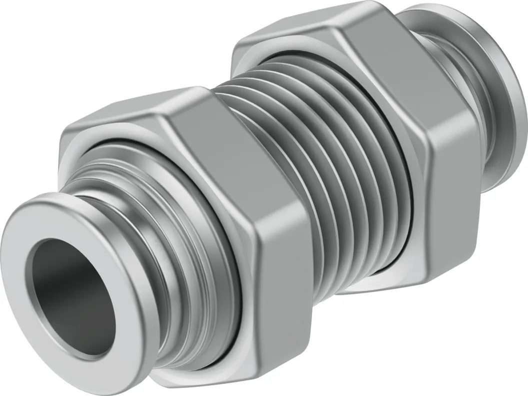 Very easy to clean thanks to chamfered O-ring and fewer edges where dirt can accumulate , Optimal price/performance ratio, perfect for applications from a single source , Maximum corrosion resistance (corrosion resistance class CRC 4 to Festo standard 940 070) and chemical resistance , High temperature resistance , Stainless steel , Operating media: compressed air, vacuum, (water) , Straight shape, L-shape, T-shape, Y-shape, push-in bulkhead connector