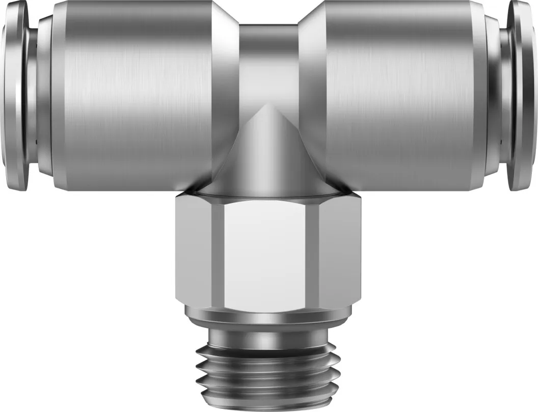 Very easy to clean thanks to chamfered O-ring and fewer edges where dirt can accumulate , Optimal price/performance ratio, perfect for applications from a single source , Maximum corrosion resistance (corrosion resistance class CRC 4 to Festo standard 940 070) and chemical resistance , High temperature resistance , Stainless steel , Operating media: compressed air, vacuum, (water) , Straight shape, L-shape, T-shape, Y-shape, push-in bulkhead connector