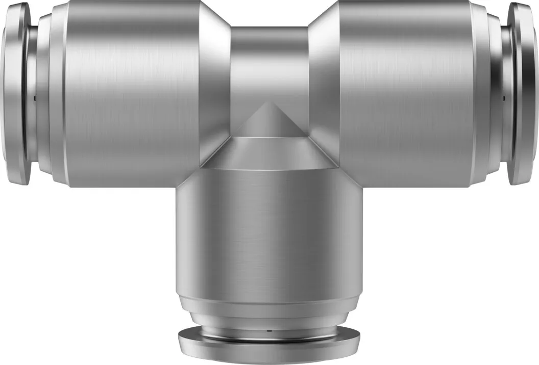 Very easy to clean thanks to chamfered O-ring and fewer edges where dirt can accumulate , Optimal price/performance ratio, perfect for applications from a single source , Maximum corrosion resistance (corrosion resistance class CRC 4 to Festo standard 940 070) and chemical resistance , High temperature resistance , Stainless steel , Operating media: compressed air, vacuum, (water) , Straight shape, L-shape, T-shape, Y-shape, push-in bulkhead connector