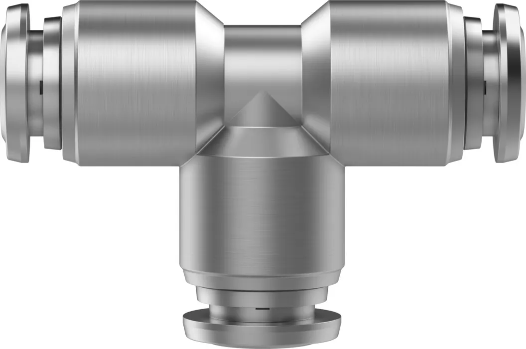 Very easy to clean thanks to chamfered O-ring and fewer edges where dirt can accumulate , Optimal price/performance ratio, perfect for applications from a single source , Maximum corrosion resistance (corrosion resistance class CRC 4 to Festo standard 940 070) and chemical resistance , High temperature resistance , Stainless steel , Operating media: compressed air, vacuum, (water) , Straight shape, L-shape, T-shape, Y-shape, push-in bulkhead connector