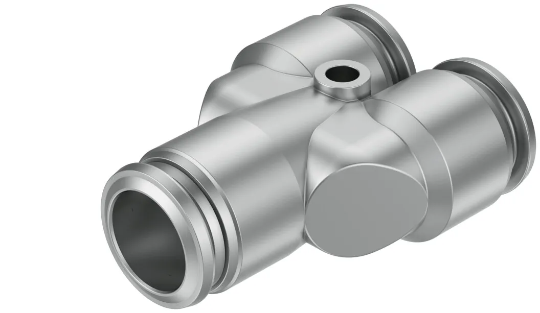 Very easy to clean thanks to chamfered O-ring and fewer edges where dirt can accumulate , Optimal price/performance ratio, perfect for applications from a single source , Maximum corrosion resistance (corrosion resistance class CRC 4 to Festo standard 940 070) and chemical resistance , High temperature resistance , Stainless steel , Operating media: compressed air, vacuum, (water) , Straight shape, L-shape, T-shape, Y-shape, push-in bulkhead connector