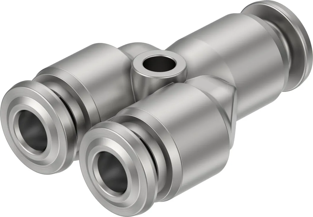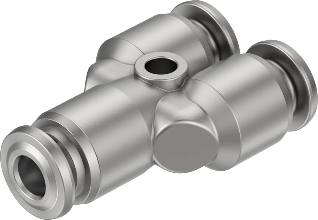 Very easy to clean thanks to chamfered O-ring and fewer edges where dirt can accumulate , Optimal price/performance ratio, perfect for applications from a single source , Maximum corrosion resistance (corrosion resistance class CRC 4 to Festo standard 940 070) and chemical resistance , High temperature resistance , Stainless steel , Operating media: compressed air, vacuum, (water) , Straight shape, L-shape, T-shape, Y-shape, push-in bulkhead connector