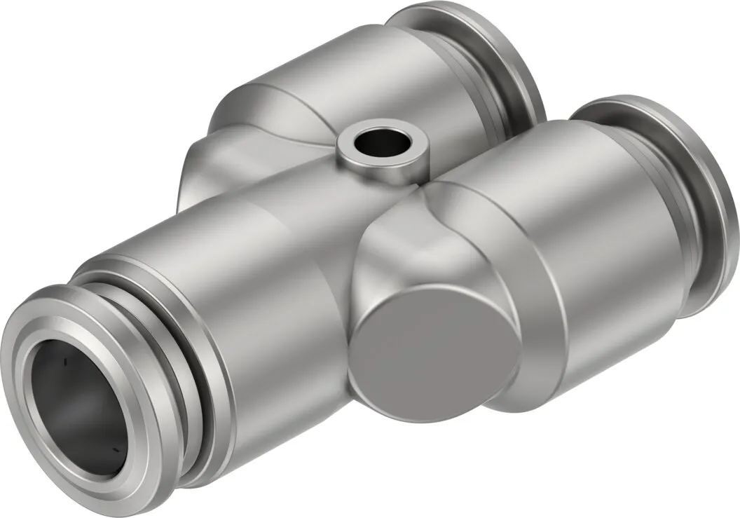 Very easy to clean thanks to chamfered O-ring and fewer edges where dirt can accumulate , Optimal price/performance ratio, perfect for applications from a single source , Maximum corrosion resistance (corrosion resistance class CRC 4 to Festo standard 940 070) and chemical resistance , High temperature resistance , Stainless steel , Operating media: compressed air, vacuum, (water) , Straight shape, L-shape, T-shape, Y-shape, push-in bulkhead connector