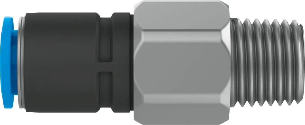 Push-in fitting, rotatable with swivel connection, rotatable by 360° with max. 500 rpm , Compact installation space , Straight shape, L-shape