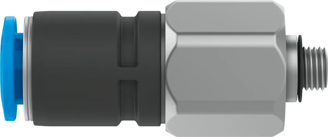 Push-in fitting, rotatable with swivel connection, rotatable by 360° with max. 500 rpm , Compact installation space , Straight shape, L-shape