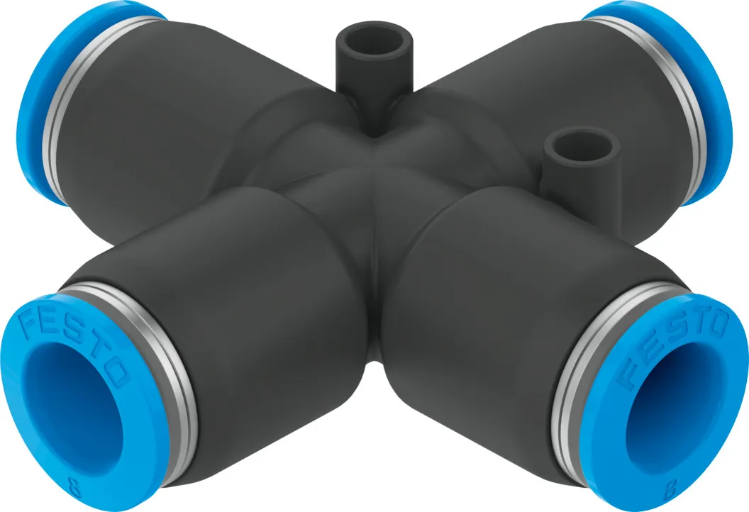 Standard series , Wide range of variants: wide selection for maximum flexibility in standard applications , PBT and nickel-plated brass , Operating media compressed air, vacuum, water. Water as per the manufacturer’s declaration, see www.festo.com/certificates/QS , Straight shape, L-shape, T-shape, at 45° angle, X-shape, Y-shape, push-in bulkhead connector