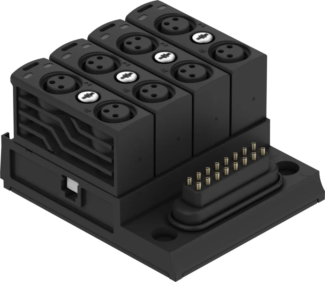 M8 (IP6x) – detachable plug adapter for extremely high packing density and easy mounting , Terminal strip (IP20) – three-wire connection possible per input , Compact and cost-effective , For internal serial links , PNP or NPN , 2 inputs per valve position , For manifold sub-bases with 4 valves