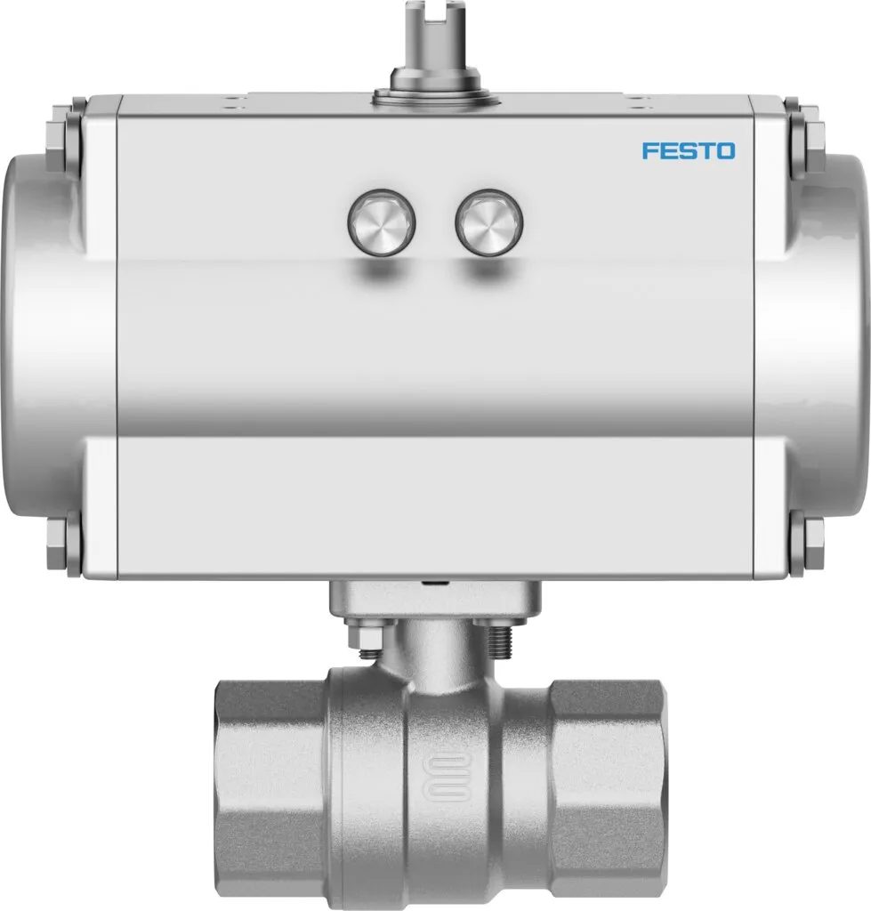 Ball valve actuator unit with double-acting quarter turn actuatorDFPD , Brass ball valve , NAMUR connection pattern for solenoid valves/limit switch attachments to VDI/VDE 3845 , Flow is fully opened…