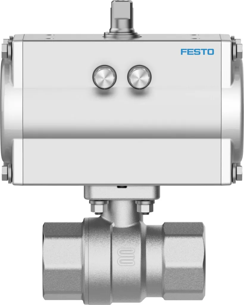 Ball valve actuator unit with double-acting quarter turn actuatorDFPD , Brass ball valve , NAMUR connection pattern for solenoid valves/limit switch attachments to VDI/VDE 3845 , Flow is fully opened…