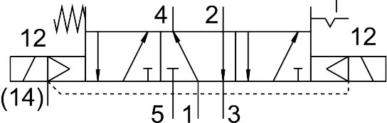 5/3-way, port 4 pressurised, 2 exhausted